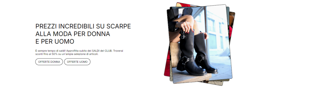 - Frequent offers and sales, helping you secure premium shoes without overspending. On their homepage they highlight “Prezzi incredibili … sconti fino al 50%” (incredible prices … discounts up to 50%). :contentReference[oaicite:7]{index=7}