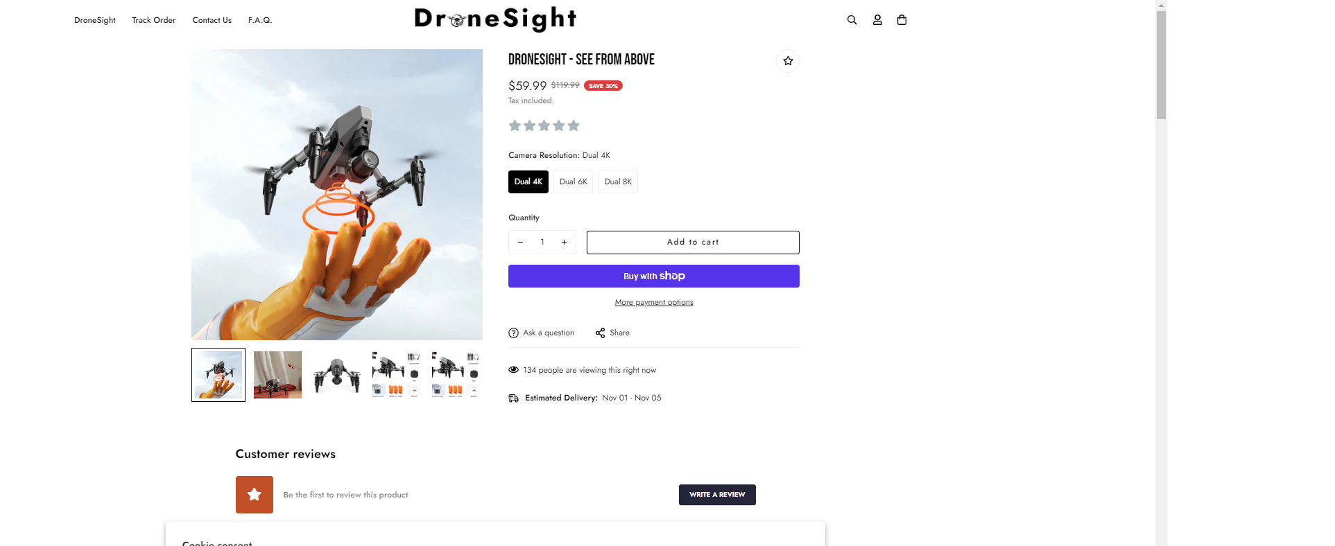 Acquistare su DroneSight significa affidarsi a un team che mette il cliente al centro. L’interfaccia del sito è chiara e intuitiva, con schede tecniche dettagliate, recensioni reali e immagini di alta qualità. Ogni prodotto è corredato di informazioni precise su autonomia, peso, capacità di registrazione e compatibilità con accessori.