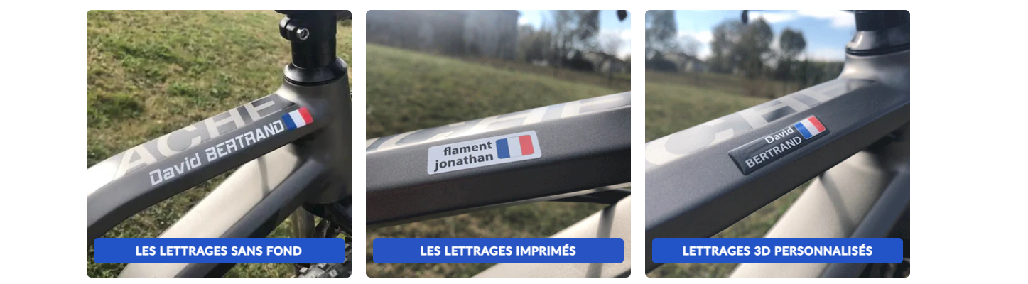 Lettrage Vélo se distingue par son engagement envers la qualité et la personnalisation. Les stickers sont fabriqués à partir de matériaux résistants aux intempéries et aux UV, garantissant une longue tenue même lors des sorties les plus exigeantes. Chaque produit est conçu pour s’adapter à différents types de cadres et de surfaces, permettant une application facile et un rendu professionnel. La marque allie esthétique, durabilité et praticité pour offrir une expérience complète aux cyclistes.