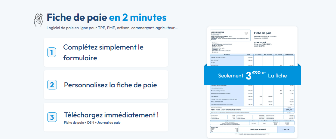 - La simplicité et la rapidité du processus, permettant aux utilisateurs de créer des fiches de paie en quelques minutes seulement. fiche-paie.net