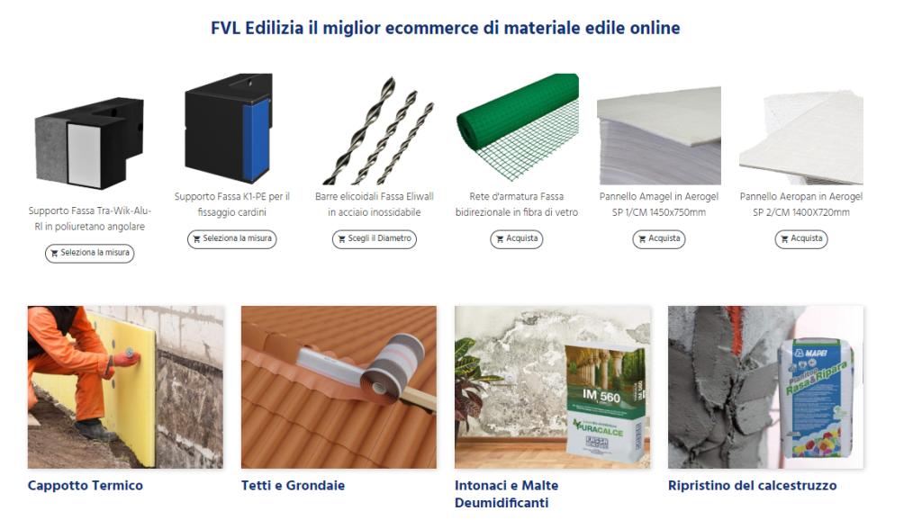 Il grande vantaggio di FV L’Edilizia è la sua varietà. Che si tratti di un piccolo intervento domestico o di un grande progetto edilizio, sul sito è possibile trovare tutto il necessario: