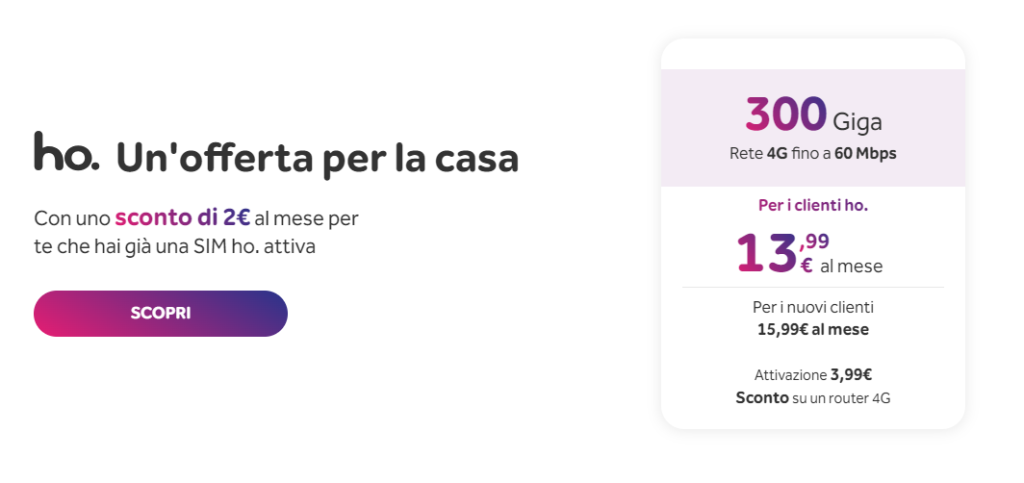 • Offerte con 150 GB, minuti illimitati e 200 SMS a 9,95 euro al mese. ho-mobile.it
