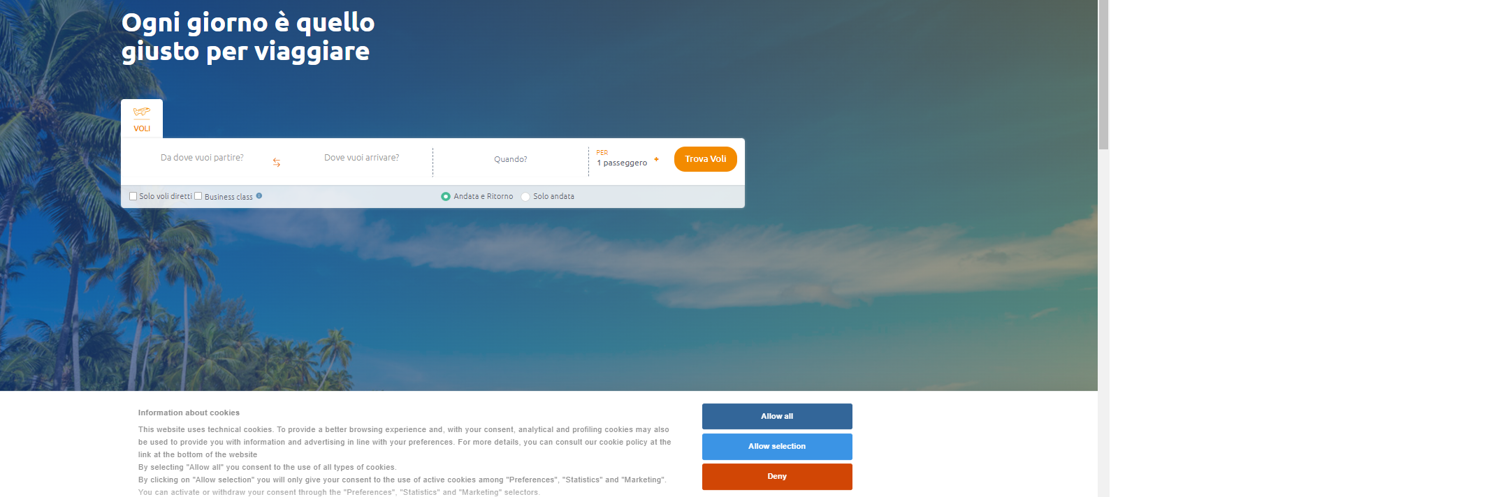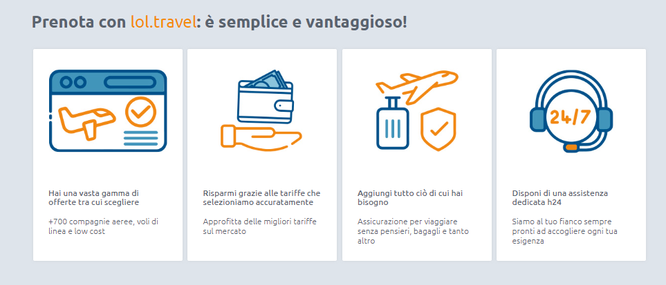 Con LOL.travel trovare il volo ideale non è mai stato così facile. Il portale confronta migliaia di opzioni tra compagnie aeree nazionali e internazionali, offrendo tariffe competitive, orari flessibili e possibilità di scegliere voli diretti o con scali ottimizzati. Grazie ai filtri intuitivi, puoi selezionare voli in base al prezzo, alla durata, alla compagnia aerea o alla classe desiderata, garantendo una prenotazione su misura per le tue esigenze.
