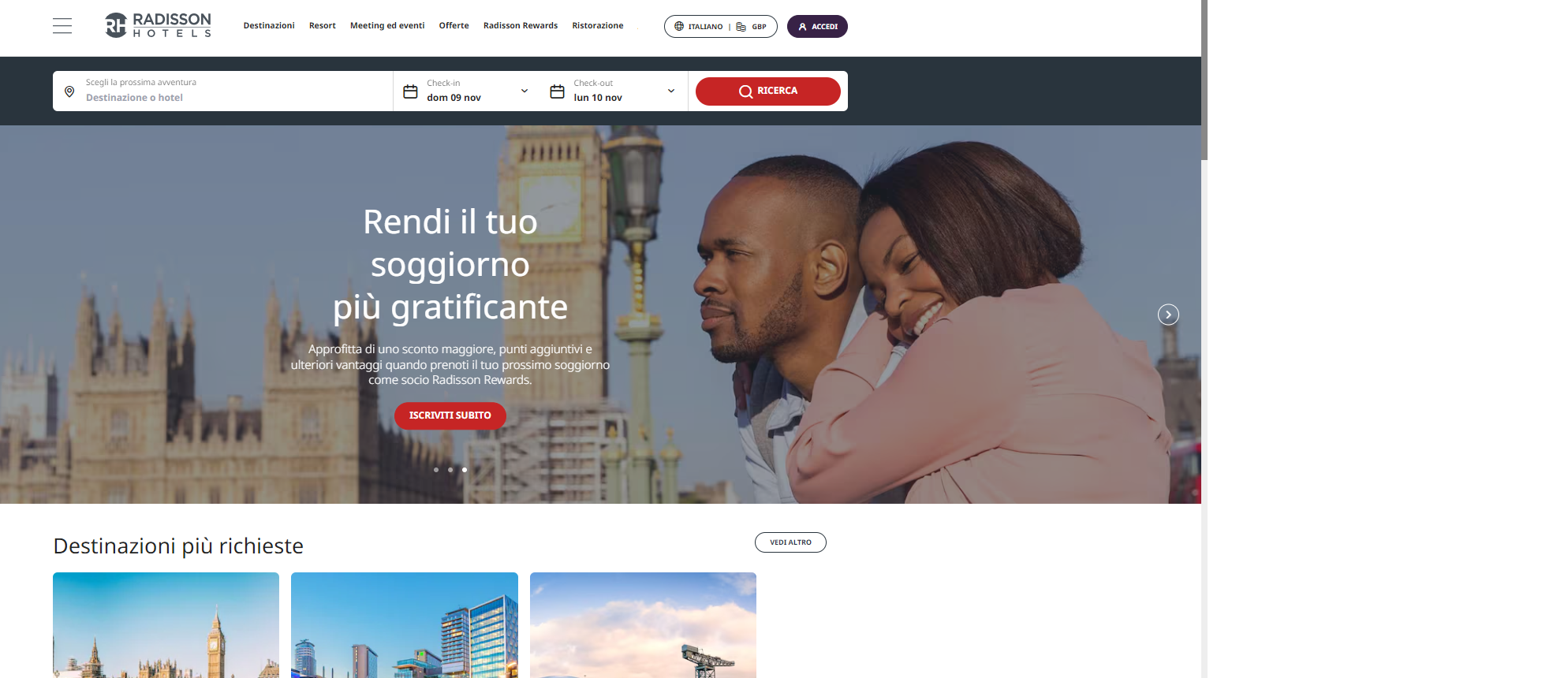 Sia che tu stia pianificando una fuga breve, una vacanza lunga o un viaggio di lavoro, Radisson Hotels offre l’esperienza, la qualità e l’affidabilità necessarie per rendere ogni soggiorno indimenticabile. La scelta di questo brand significa puntare su un servizio globale, riconosciuto e apprezzato dai viaggiatori più esigenti.