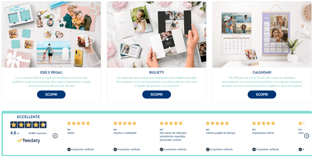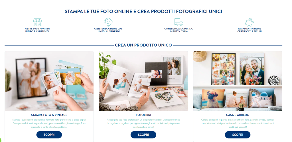 - Ampia selezione di prodotti, dalle stampe fotografiche ai gadget e all’arredo personalizzato.