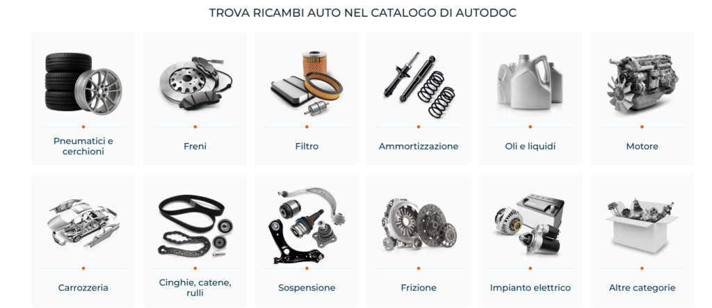 Visitando Autodoc si accede a una piattaforma ricca di sezioni dedicate a diverse categorie di ricambi e accessori. La struttura del sito è organizzata per consentire una navigazione intuitiva: è possibile cercare prodotti per marca e modello di auto, per tipologia di componente oppure utilizzando il numero di catalogo.
