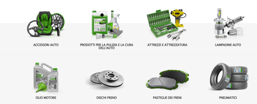 - Accessori e materiali di consumo, come spazzole tergicristallo, tappetini, prodotti per la cura dell’auto e più.