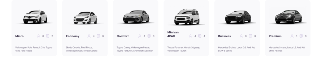 - Comprehensive Vehicle Selection: Choose from a variety of vehicle types, including economy, business, luxury, and group options.