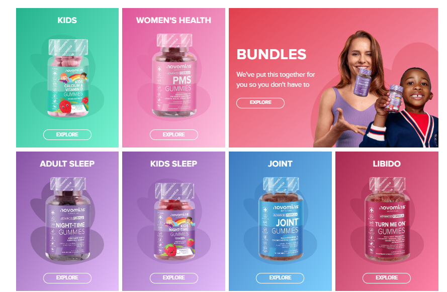 - Health Solutions: The website provides targeted health solutions, such as supplements for immune support, digestive health, mental clarity, and more. Novomins makes it easy for customers to find the products that best suit their specific needs.