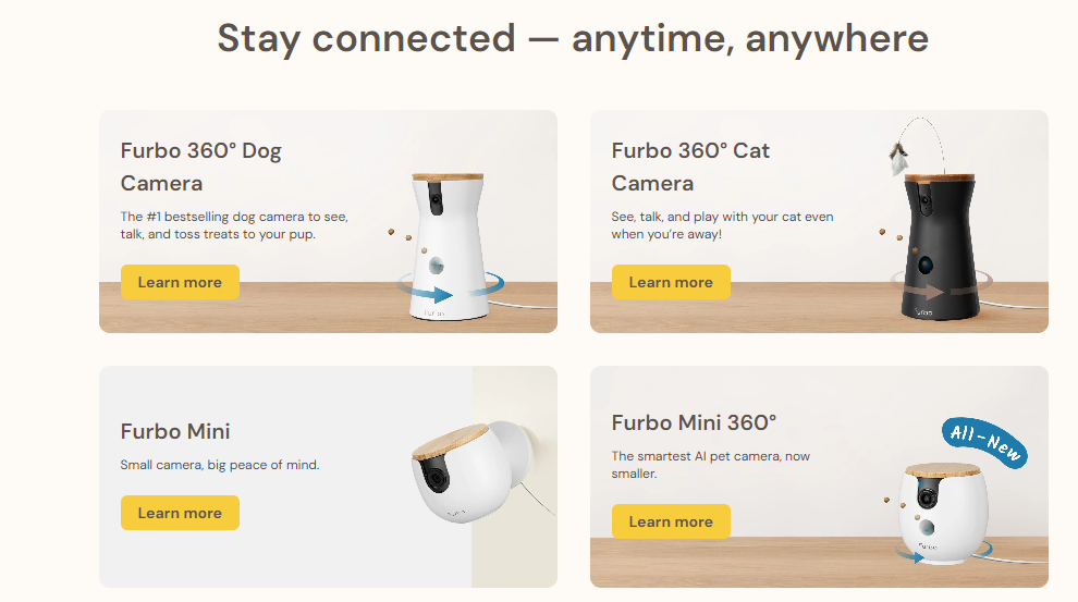 When you visit the official Furbo website, you’re greeted with a sleek, user-friendly platform designed to showcase everything the brand has to offer. Here’s an overview of what you can expect to find: