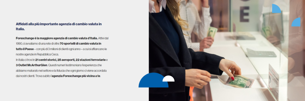 Forexchange si è affermato come il principale operatore italiano nel servizio di cambio valuta, con oltre trenta anni di esperienza nel settore e una rete diffusa di oltre 70 sportelli sul territorio nazionale. Grazie a una presenza capillare in città, stazioni ferroviarie, aeroporti e centri commerciali, il brand rappresenta un punto di riferimento per turisti, viaggiatori e residenti che necessitano di un servizio di conversione valuta affidabile e trasparente.