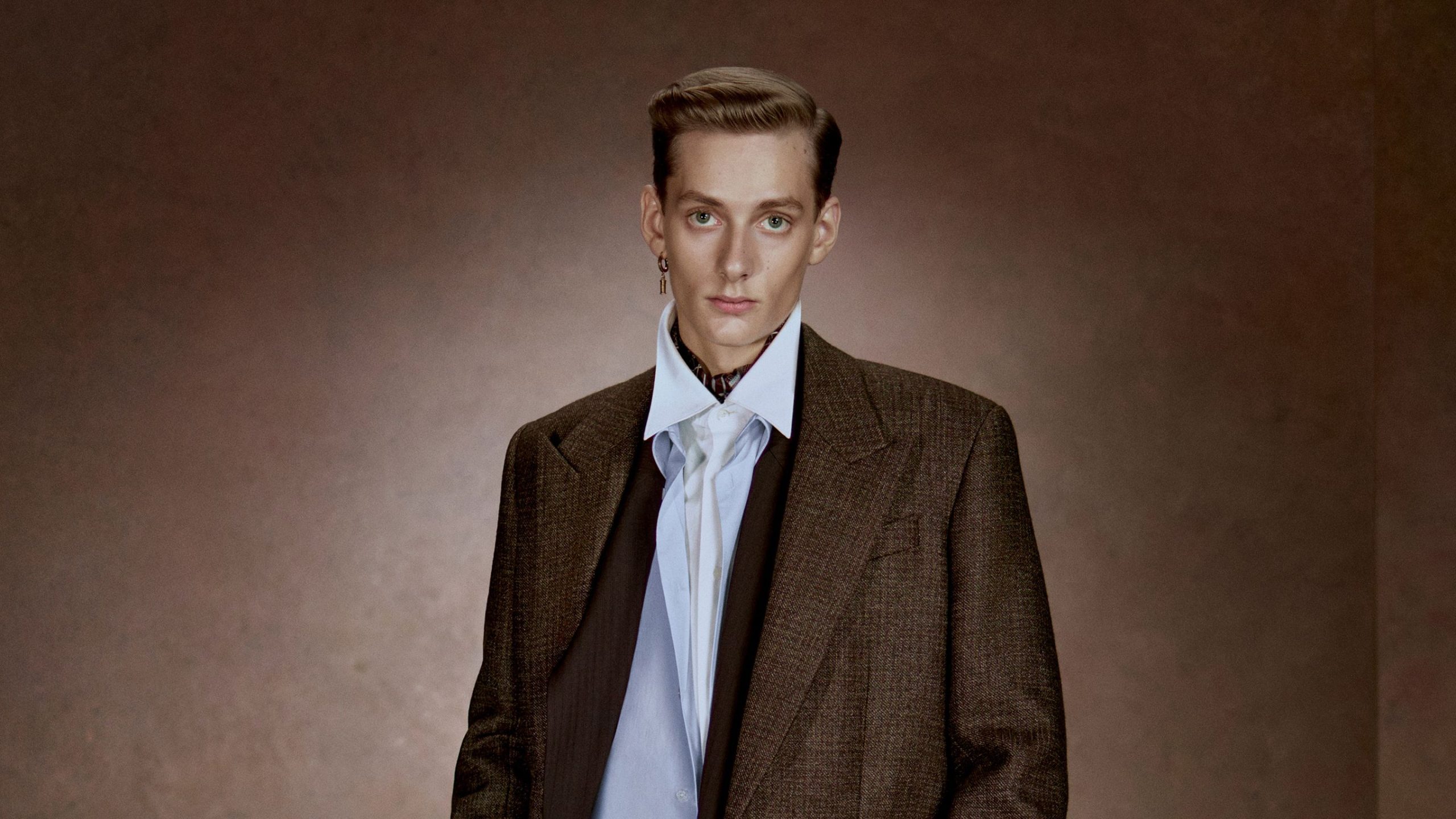 Johansson’s milestone-sparked instinct to lean towards classicism is in sync with the broader wave, but the designer rode it in his own distinct way. He had discovered a stack of vintage menswear catalogues that reminded him of the sartorial didacticism of old: how to tie a tie, unpacking the meaning of elbow patches, that kind of thing. “It was also about individualism” he said, “but now with the speed of aesthetic consumption it’s all about full looks.”
