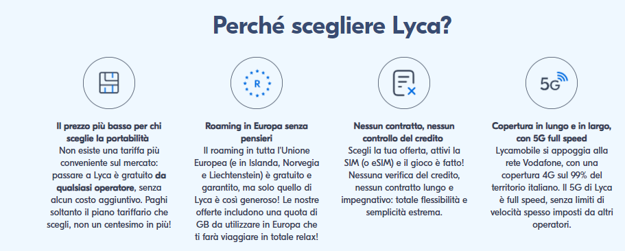 Il valore di Lycamobile risiede nella combinazione di convenienza, trasparenza e flessibilità. Gli utenti possono gestire il servizio senza vincoli, risparmiare sulle chiamate e sul traffico dati, e adattare il piano alle proprie necessità in qualsiasi momento. Questa flessibilità rende Lycamobile ideale sia per chi utilizza il cellulare sporadicamente sia per chi ha bisogno di un servizio completo e affidabile.