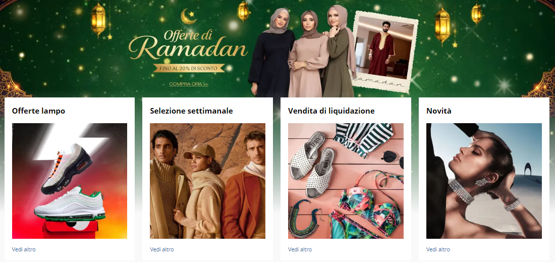 Visitando la pagina del negozio si nota subito la quantità di categorie disponibili: abbigliamento maschile e femminile, scarpe e borse, elettronica di consumo, articoli sportivi, prodotti per la casa e persino articoli per bambini sono solo alcune delle proposte presenti.