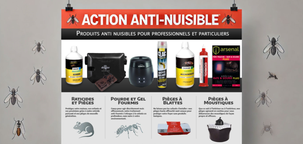 Avec Action Anti Nuisible, il est possible d’accéder à un large catalogue de produits comprenant des pièges, des répulsifs, des produits chimiques et des solutions naturelles. Cette diversité permet à chaque client de choisir le produit le plus adapté à sa situation, que ce soit pour un traitement ponctuel ou pour une prévention sur le long terme.