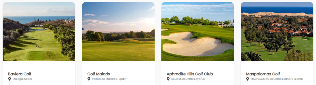 GreenFee365 offre un accès à plus de 1000 terrains de golf répartis à travers le monde. Que vous souhaitiez jouer en Espagne, au Portugal, à Chypre, en Thaïlande ou en Égypte, vous pouvez réserver vos heures de départ directement depuis le site. Chaque parcours est présenté avec des informations claires sur le lieu, les infrastructures et les caractéristiques uniques, ce qui facilite le choix en fonction de vos envies et de votre niveau.