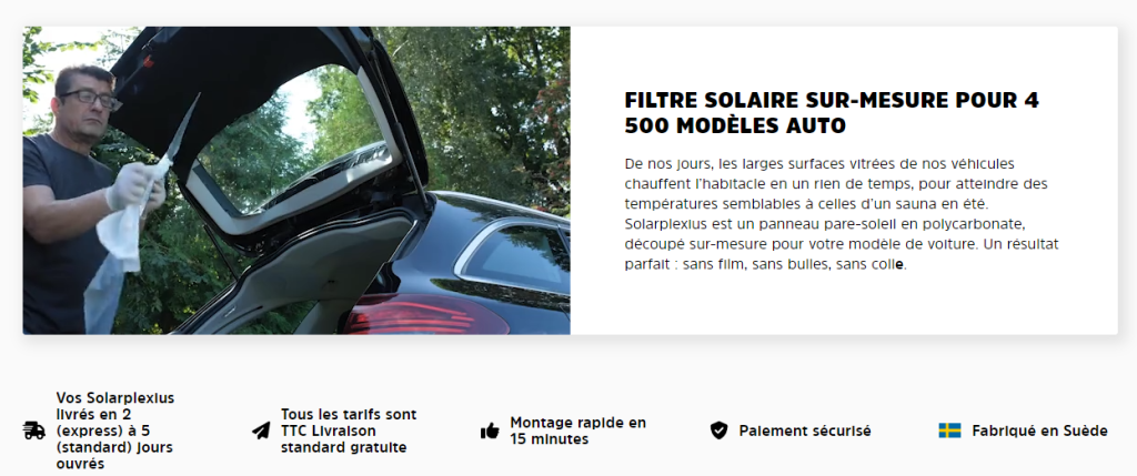 Solarplexius révolutionne la protection solaire pour voitures en proposant des panneaux semi-rigides en polycarbonate, pré-découpés sur-mesure pour plus de 4 500 modèles de véhicules. Contrairement aux films teintés classiques, les panneaux Solarplexius se posent en environ 15 minutes, sans colle, bulles ni tracas, offrant une solution durable et pratique pour chaque conducteur.